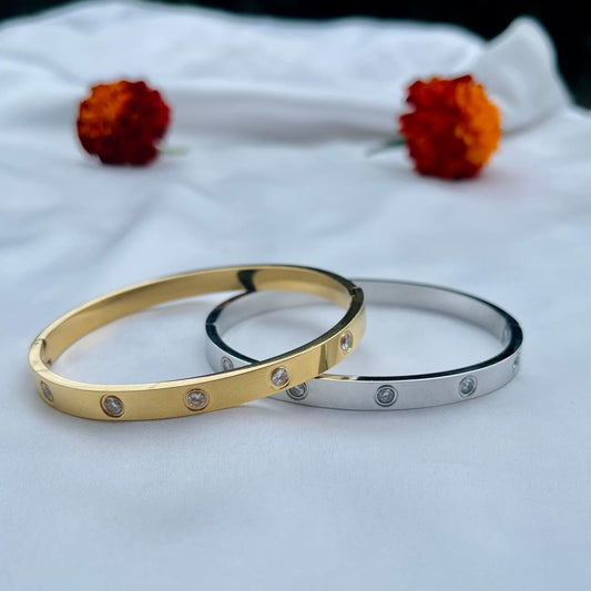 Radiant Elegance: Cubic Zirconia Stones Stainless Steel Bangle
